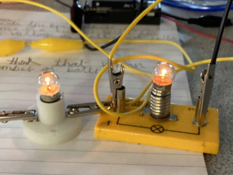 We completed some experiments building circuits, checking the brightness of bulbs and how it is affected by adding more bulbs or batteries.
